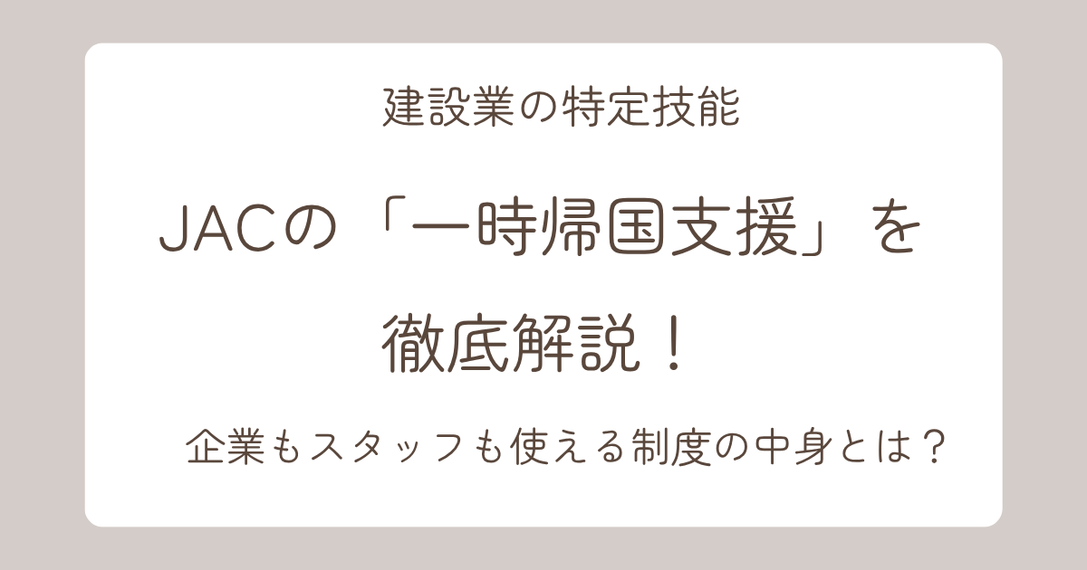 建設分野で特定技能外国人を受け入れている企業さん、JAC(建設技能人材機構)の「一時帰国支援」を活用できていますか?